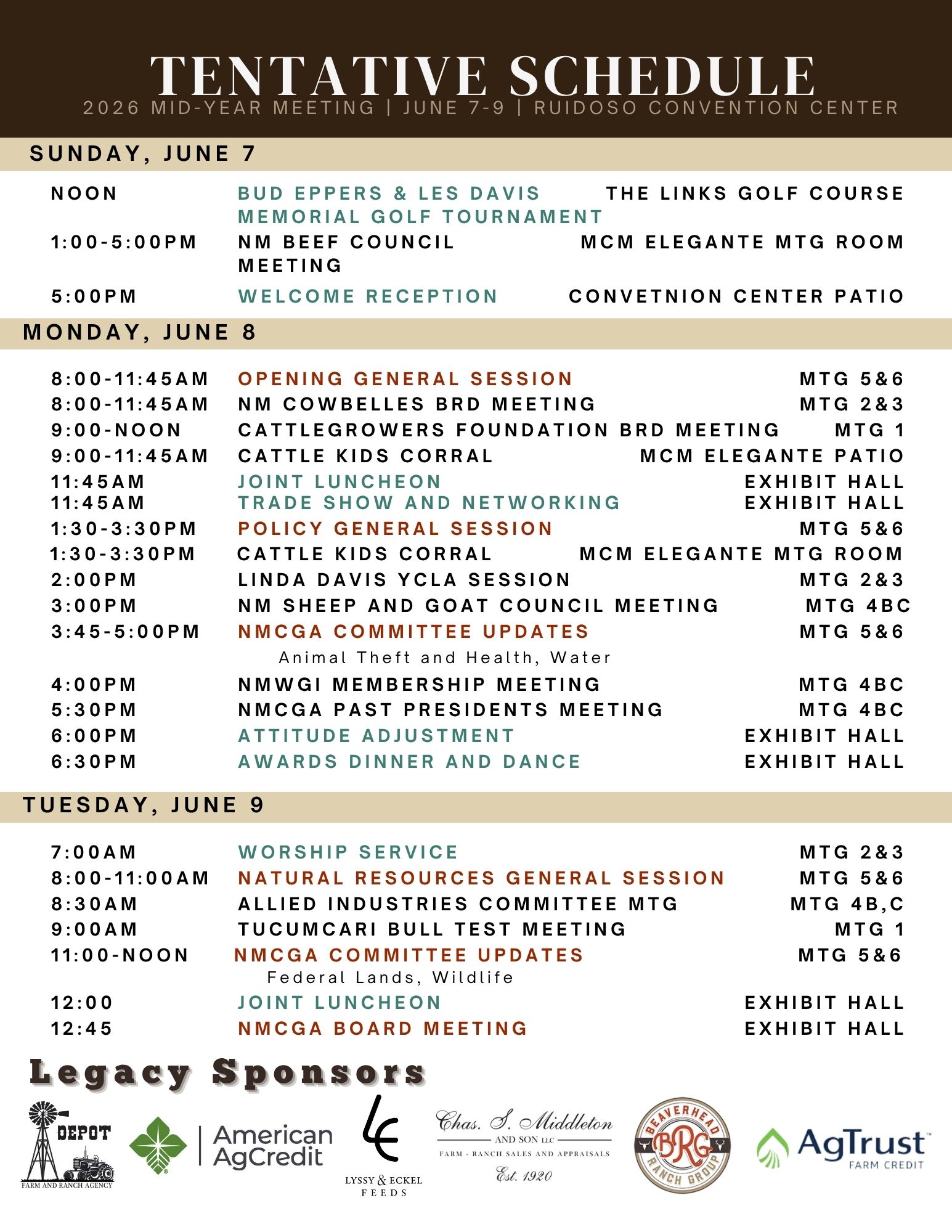 MCM Elegante Lodge & Resort 107 Sierra Blanca Dr, Ruidoso, NM 88345575-258-5500 Mention Cattle Growers for group rate | Expires May 1, 2026Registration